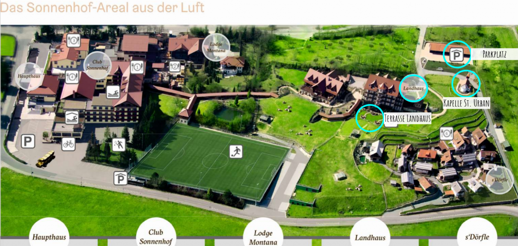 Die Feier findet direkt daneben im Landhaus des Sonnenhof statt.